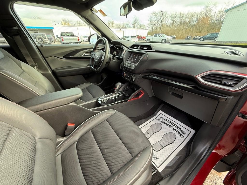 2023 Chevrolet TrailBlazer RS AWD in Crimson Metallic with a Jet Black Cloth interior with 44.2k miles and a Clean, One-Owner CarFax Vehicle History Report available for immediate delivery at Cavallaro-Neubauer Chevrolet. This Chevy TrailBlazer RS is equipped with the 1.3L DOHC Turbocharged inline-3 paired to a 9-speed automatic transmission sending power to all four wheels while still managing an impressive 29 MPG highway on the commute. Looking for that perfect pint-sized AWD crossover with big interior space and some of the best connectivity in the business. The Chevrolet Infotainment comes with native Apple CarPlay and Android Auto to stream all of your calls, music, podcasts and more on the go with more than enough USB and USB-C charging available to both rows of passengers to make sure everyone stays connected. The front seats and chunky RS Steering wheel are both heated for year round comfort, and all of the audio controls at your finger tips for maximum convenience. Lower the rear seats in seconds when you have bigger cargo and enjoy the peace of mind of tons of high tech safety features watching your back for every mile including rear cross traffic alert, side blindzone warning and adaptive cruise control to watch your back. Do not wait, this is an incredible AWD crossover that is going to make someone happy for years to come no matter what the weather throws at you! Make the upgrade today by visiting Cavallaro-Neubauer Chevrolet to take a test drive!