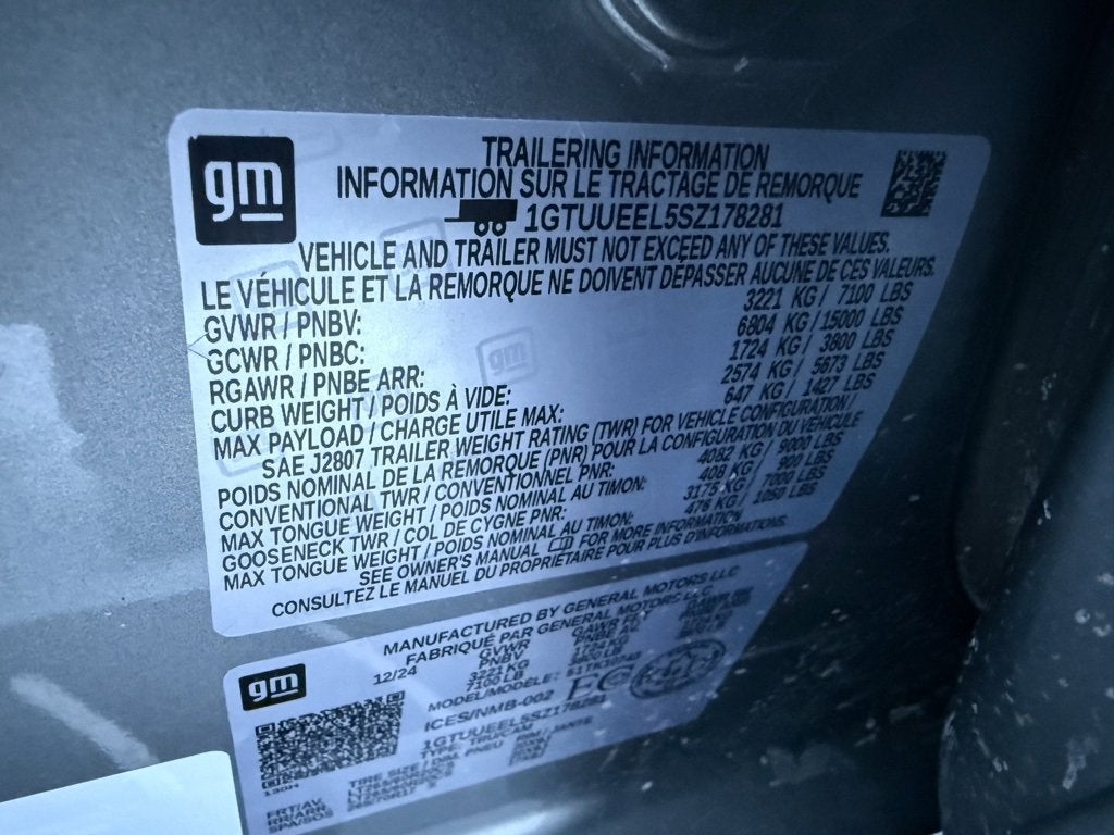 2025 GMC Sierra 1500 AT4 Crew Cab in Sterling Metallic with a Jet Black and Kalahari Leather interior, with 15.0k miles and a Clean CarFax Vehicle History Report available now at Cavallaro-Neubauer Chevrolet. This GMC Sierra AT4 is equipped with the howling 6.2L EcoTec3 V8 paired to a 10-speed automatic transmission with push button 4WD, an integrated trailer brake controller, with 9,000 lbs of towing capacity. If you are looking for the most impeccably designed and laid out interior of any of the off-road ready half tons on the market this is the one! The interior is incredibly sharp, effortlessly smart, and comfortable for all of your uses. The front seats are heated and ventilated, with heated second row seats and a heated steering wheel that is loaded with all of the audio controls that you need. The GMC Intellilink Infotainemnt looks like it belongs in a modern art gallery, with effortlessly good connectivity powered by native Apple Carplay and Android Auto that streams all of your calls, music, podcasts and more through Bose Sound. The HD surround vision has rear camera hookups that get your trailer, boat, or camper in on the action for flawless dismounts every single time, and there are more than enough USB and USB-C charging ports to make sure that everyone stays connected no matter how far the road trip takes you and your passengers. The massive center console is incredibly capable at storing your stuff, and the electronic shift controller is another incredible touch on this perfectly appointed half ton. Best of all, the 6.2 pumps out all of the torque you need with an incredible soundtrack to boot. This is a great half ton that makes a statement everywhere it goes. Do not wait make a massive upgrade with this incredibly sharp, incredibly clean GMC Sierra AT4 today at Cavallaro-Neubauer Chevrolet.
